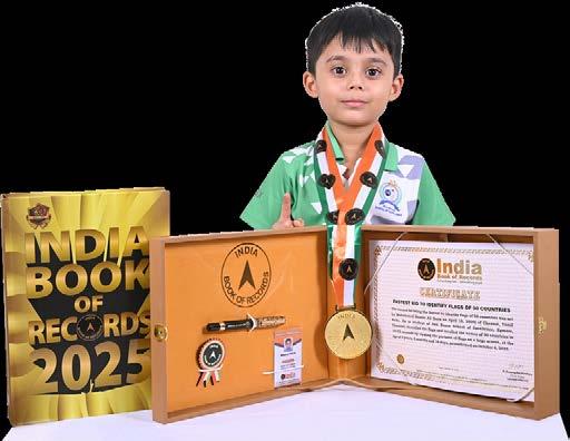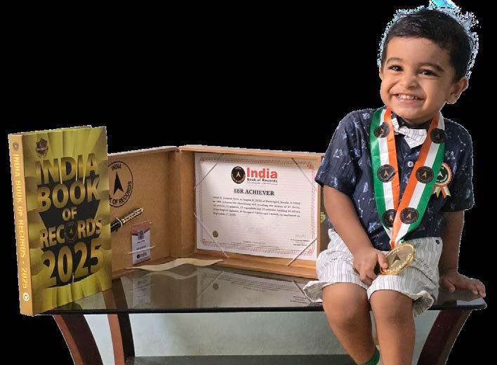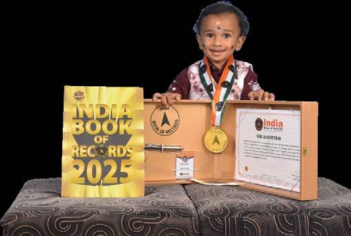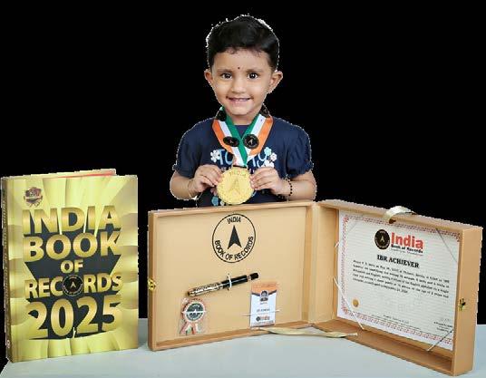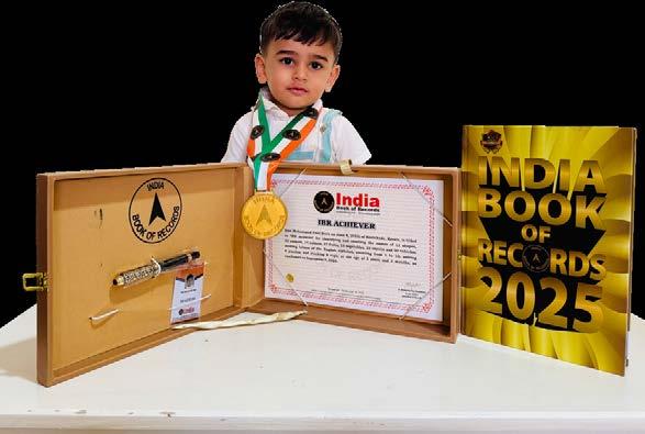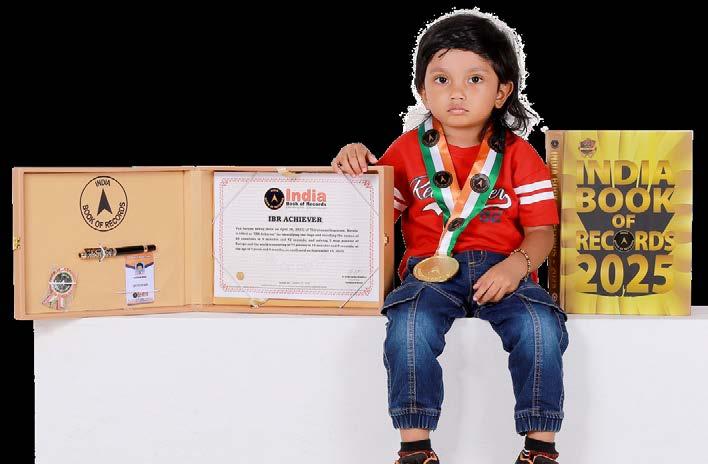 Ved Aaryan Abhay (born on April 26, 2023) of Thiruvananthapuram, Kerala, is titled as ‘IBR Achiever’ for identifying the flags and recalling the names of 88 countries in 5 minutes and 42 seconds; and solving 2 map puzzles of Europe and the world (consisting of 75 pieces) in 15 minutes and 8 seconds, at the age of 2 years and 4 months, as confirmed on September 15, 2025.