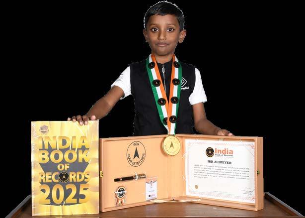 Ram Madhav V. P. (born on May 10, 2017) of Kannur, Kerala, is titled as ‘IBR Achiever’ for identifying and naming 12 animals, 11 vegetables, 12 vehicles, 12 fruits, 11 colours and 12 shapes; recalling the names of the capitals and currencies of 60 countries; and counting from 1 to 350, at the age of 8 years and 4 months, as confirmed on September 23, 2025.