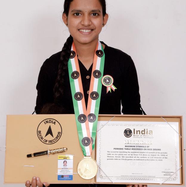 Anju (born on May 2, 1985) of Thrissur, Kerala, is titled as ‘IBR Achiever’ for stitching 5 miniature dresses (each measuring 5.5 cm) on a sewing machine, namely a nylon frock, a denim skirt, a tissue skirt, a hakoba blouse and a pair of loose trousers, as confirmed on September 23, 2025.