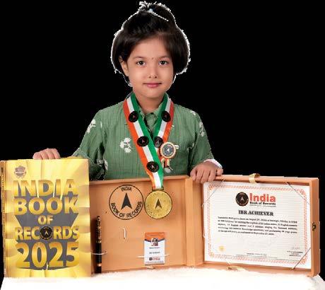 Shubhalaxmi Jena (born on June 9, 2022) of Kendujhar, Odisha, is titled as ‘IBR Achiever’ for identifying 18 deities, 20 freedom fighters, 16 vehicles, 20 flowers, 7 reptiles, 13 insects and 20 birds; counting from 1 to 12; recalling 20 national symbols; and solving a solar system puzzle of 10 pieces, at the age of 3 years and 3 months, as confirmed on September 24, 2025.