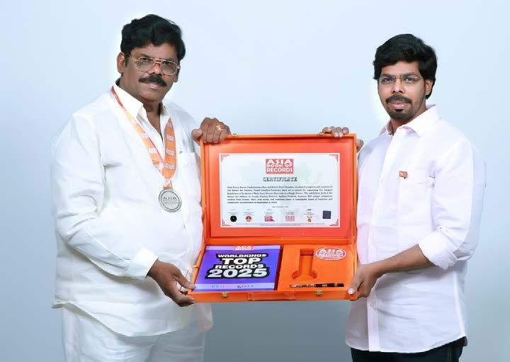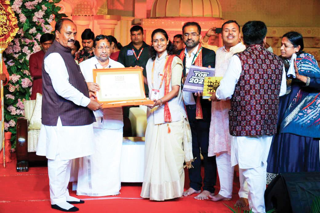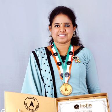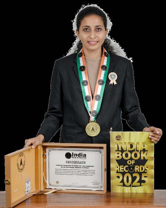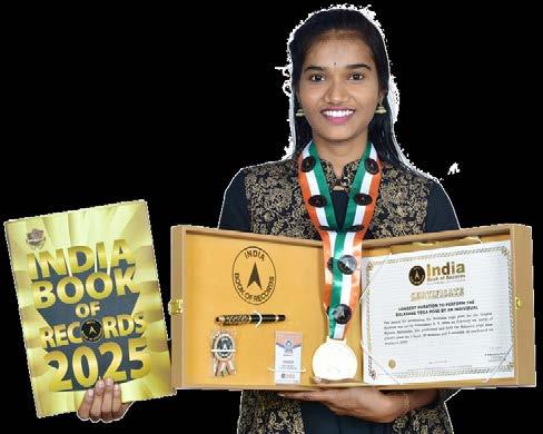 Pulla Sai Amrutha (born on November 3, 2013) of East Godavari, Andhra Pradesh, is titled as ‘IBR Achiever’ for making a pyramid of 27 rows blindfolded, measuring 5 feet and 10 inches in height, in 10 minutes and 23 seconds, using 378 paper cups, at the age of 11 years and 10 months, as confirmed on September 8, 2025.