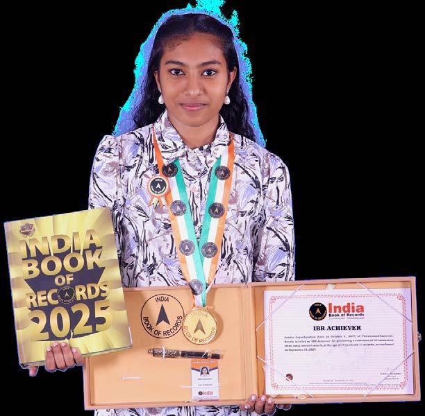 Sandra Jayachandran (born on October 5, 2007) of Thiruvananthapuram, Kerala , is titled as ‘IBR Achiever’ for presenting a collection of 25 innovative ideas, using internet search, at the age of 17 years and 11 months, as confirmed on September 12, 2025.