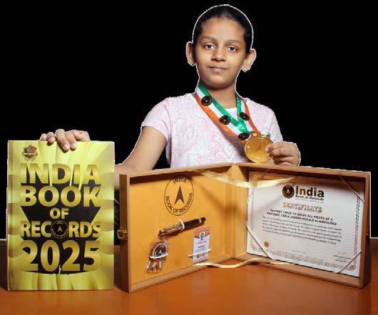 Dhanashree Kulkarni (born on September 25, 2020) of Pune, Maharashtra, is titled as ‘IBR Achiever’ for solving a jigsaw puzzle named ‘Ravensburger Puzzle’ (consisting of 100 pieces) in 17 minutes and 38 seconds, at the age of 4 years and 10 months, as confirmed on July 29, 2025.