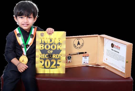 Abeer Abhimanyu Gupta (born on February 27, 2023) of Aligarh, Uttar Pradesh, is titled as ‘IBR Achiever’ for reciting days of the week, months in a year, 8 shapes, 8 planets, 7 continents and 4 mantras; recalling the capitals of 28 Indian states and 19 countries; and answering 7 G.K. questions related to celestial bodies, at the age of 2 years and 6 months, as confirmed on September 15, 2025.