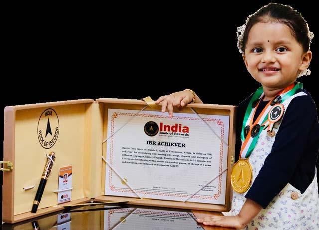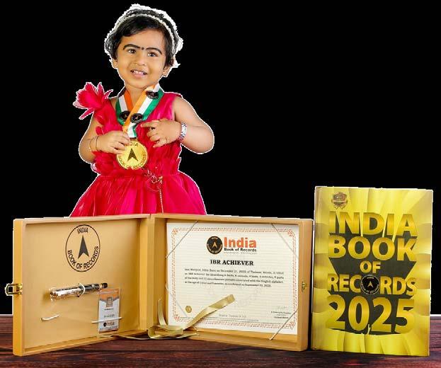 Izza Mariyam Jobin (born on December 21, 2023) of Thrissur, Kerala, is titled as ‘IBR Achiever’ for identifying 6 fruits, 6 animals, 4 birds, 5 vehicles, 9 parts of the body and 11 miscellaneous pictures associated with the English alphabet, at the age of 1 year and 9 months, as confirmed on September 22, 2025.