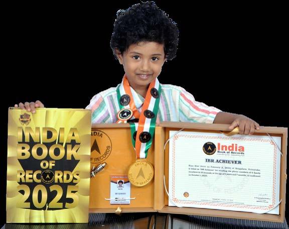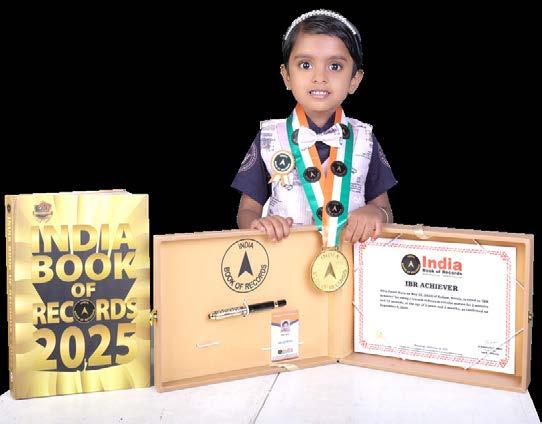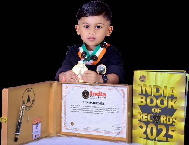 Ayaan Amal (born on August 7, 2023) of Kollam, Kerala, is titled as ‘IBR Achiever’ for identifying and naming 8 parts of the body, 10 vegetables, 12 vehicles, 6 professions, 10 freedom fighters, 12 fruits, 12 monuments and flags of 11 countries, at the age of 2 years and 1 month, as confirmed on September 22, 2025.