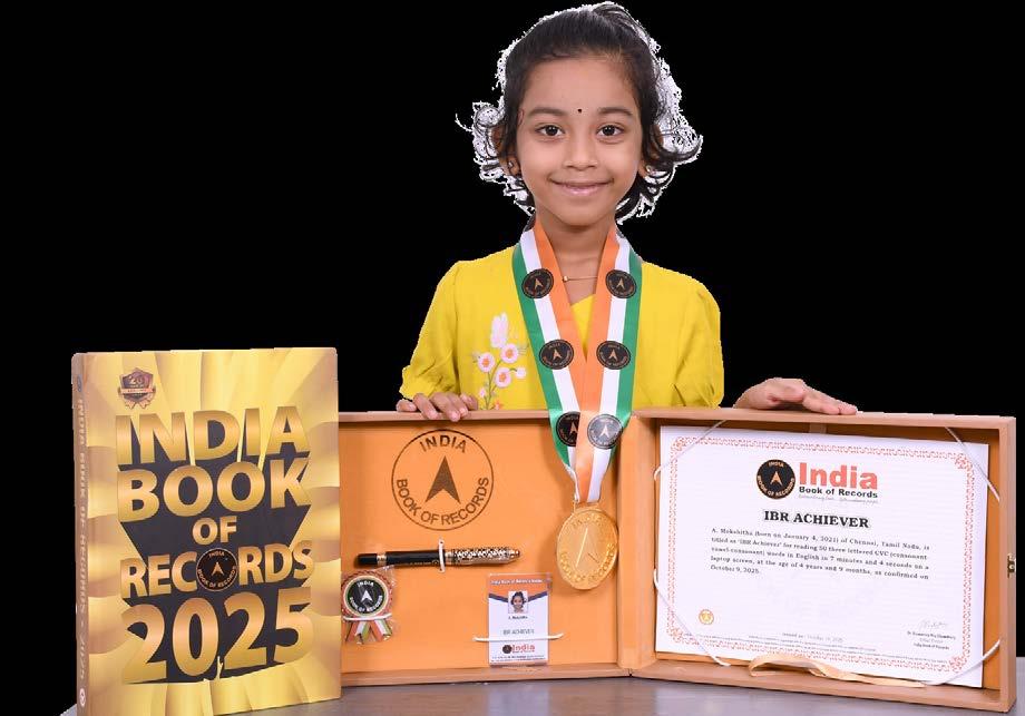 A. Mokshitha (born on January 4, 2021) of Chennai, Tamil Nadu, is titled as ‘IBR Achiever’ for reading 50 three-lettered CVC (consonant-vowel-consonant) words in English in 7 minutes and 4 seconds on a laptop screen, at the age of 4 years and 9 months, as confirmed on October 9, 2025.