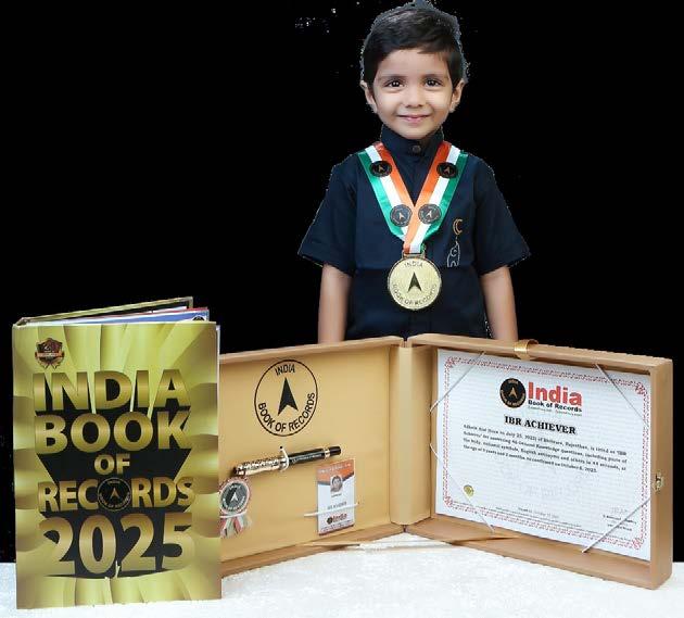 Adhvik Atal (born on July 25, 2022) of Bhilwara, Rajasthan, is titled as ‘IBR Achiever’ for answering 46 General Knowledge questions, including parts of the body, national symbols, English antonyms and others in 44 seconds, at the age of 3 years and 2 months, as confirmed on October 6, 2025.