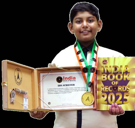 Magizh Chezhiyan S. (born on January 28, 2024) of Thoothukudi, Tamil Nadu, is titled as ‘IBR Achiever’ for identifying 13 birds, 10 animals, 8 parts of the body, 7 colours, 6 shapes, 5 vehicles, 3 fruits and 3 insects; imitating the sounds of 6 creatures; solving puzzles of 13 letters of the Tamil alphabet, numbers from 1 to 5, 11 creatures and 8 fruits, at the age of 1 year and 7 months, as confirmed on September 24, 2025.