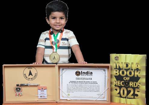 Evamary Vadakkedathu Sujith (born on April 19, 2020) of Kothamangalam, Kerala (now residing in Qatar), is titled as ‘IBR Achiever’ for reciting the names of 66 books of the Bible (King James version) in English in 42 seconds, at the age of 5 years and 4 months, as confirmed on September 9, 2025.