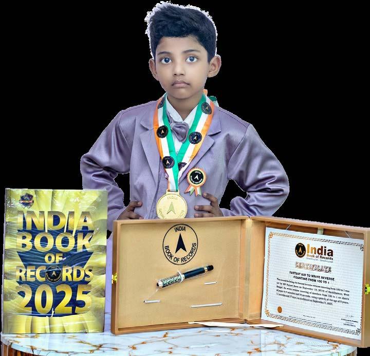 Abhinav M. (born on February 14, 2019) of Chennai, Tamil Nadu, is titled as ‘IBR Achiever’ for identifying numbers from 1 to 10, 5 shapes, 5 food items and 5 colours; writing letters of the English alphabet and solving 5 puzzles (despite being under an ASD condition), at the age of 6 years and 6 months, as confirmed on September 11, 2025.