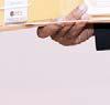 Maximum Indian currency notes with denominations and serial numbers identified by a child blindfolded