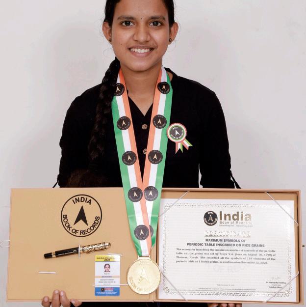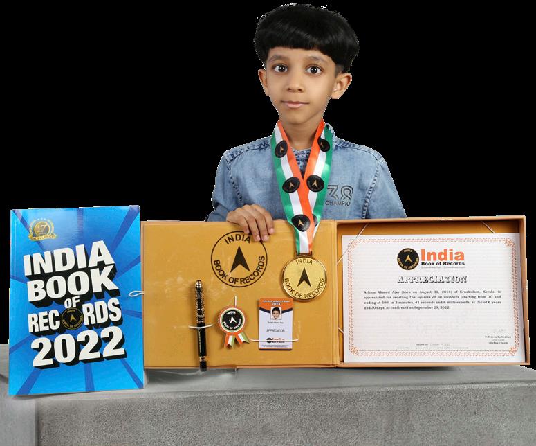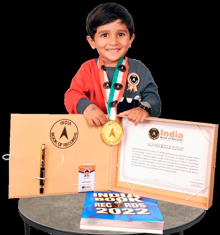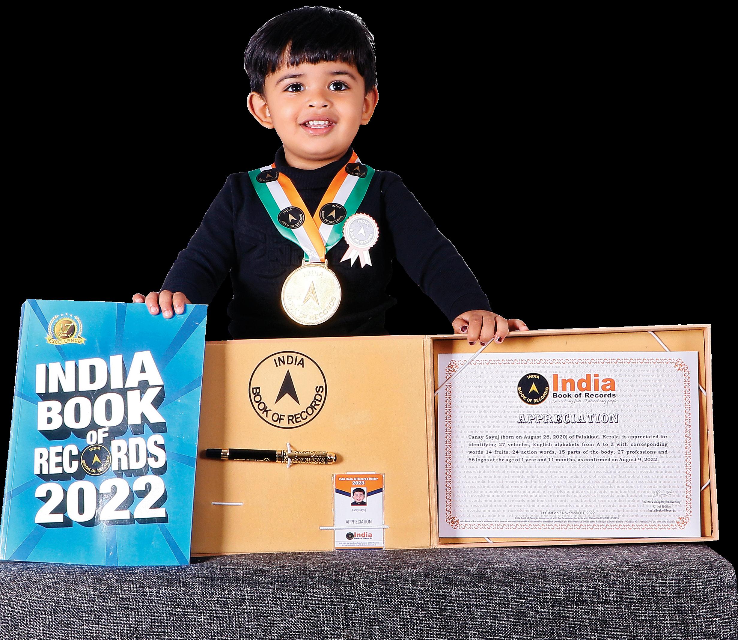 (born on December 10, 2020) of Malappuram, Kerala, is appreciated for identifying 36 birds, 25 fruits, 20 vegetables, 25 action words, 18 professionals, 23 animals, 19 flowers, 24 vehicles, 10 shapes, flags of 24 countries, 13 colours, 15 freedom fighters, 12 parts of the body, 88 random objects; and reciting letters of the alphabet from A – Z, along with 26 words, at the age of
