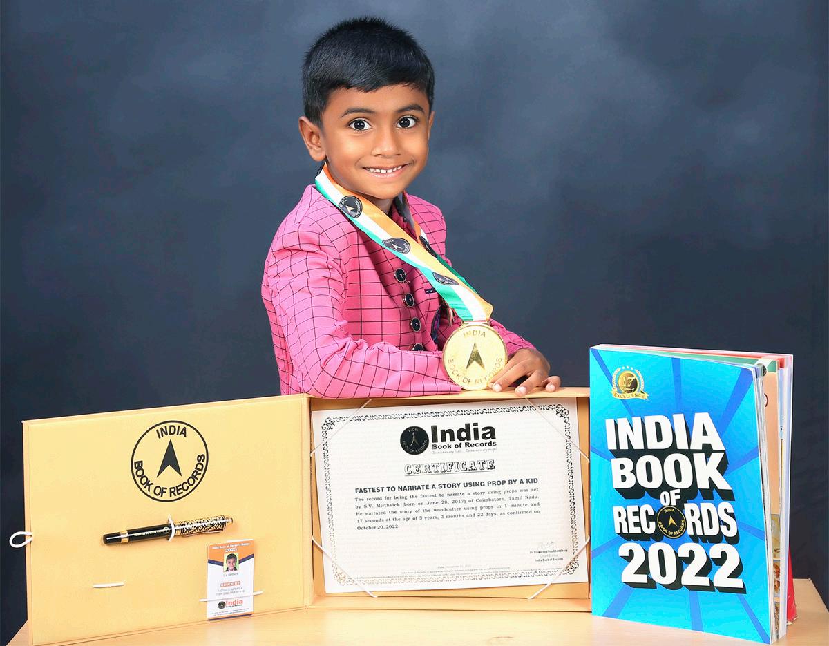 (born on April 30, 2018) of Bellary, Karnataka, is appreciated for identifying 25 animals, 25 vegetables, 33 fruits, 20 Indian leaders, 8 poets; reciting 8 planets; writing 150 words; and answering 100 G.K. questions at the age of 4 years and 4 months, as confirmed on September 6, 2022.