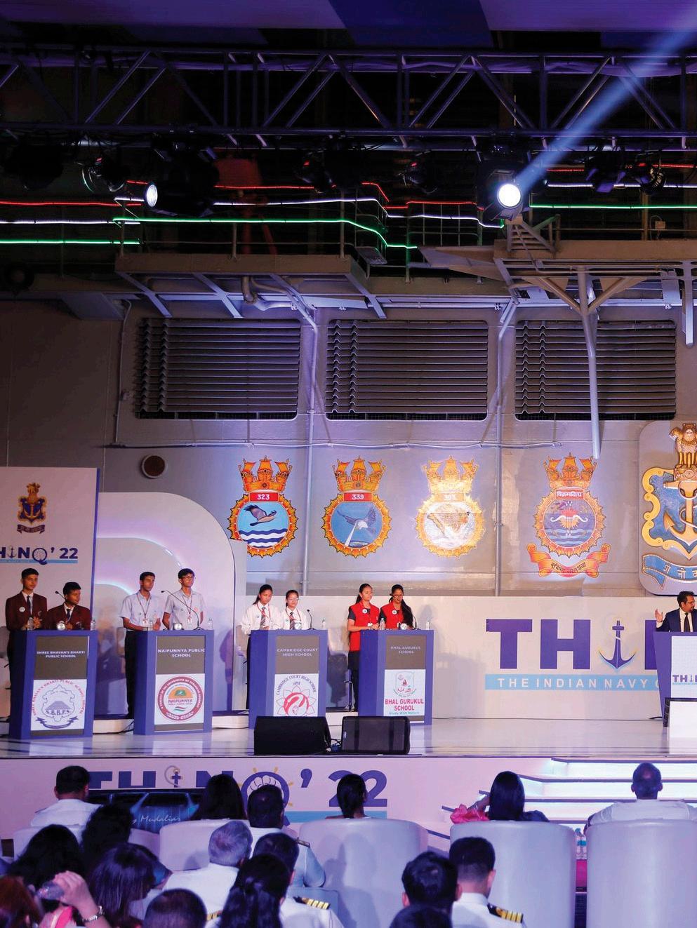 The states included Andhra Pradesh, Chhattisgarh, Jharkhand, Kerala (2), Maharashtra (2), Madhya Pradesh, Punjab, Rajasthan, Uttar Pradesh (2), Telangana, Uttarakhand and West Bengal (2). Out of 16 qualified schools, these 8 teams qualified for the grand finale which was held on November 23, 2022: Delhi Public School, Ranchi, SBBPS Bhopal, Navy Children School, Mumbai, Dewan Public School, Meerut, Naipunnya School, Kochi, Bhal Gurukul School, Kalyan, Sunbeam School, Lahartara, Varanasi, and Cambridge Court High School, Jaipur. The final quiz onboard the warship was conducted by Quizmaster Vinay Mudaliar and Ms. Rachita Gounder. The winning teams were given cash awards and certificates.