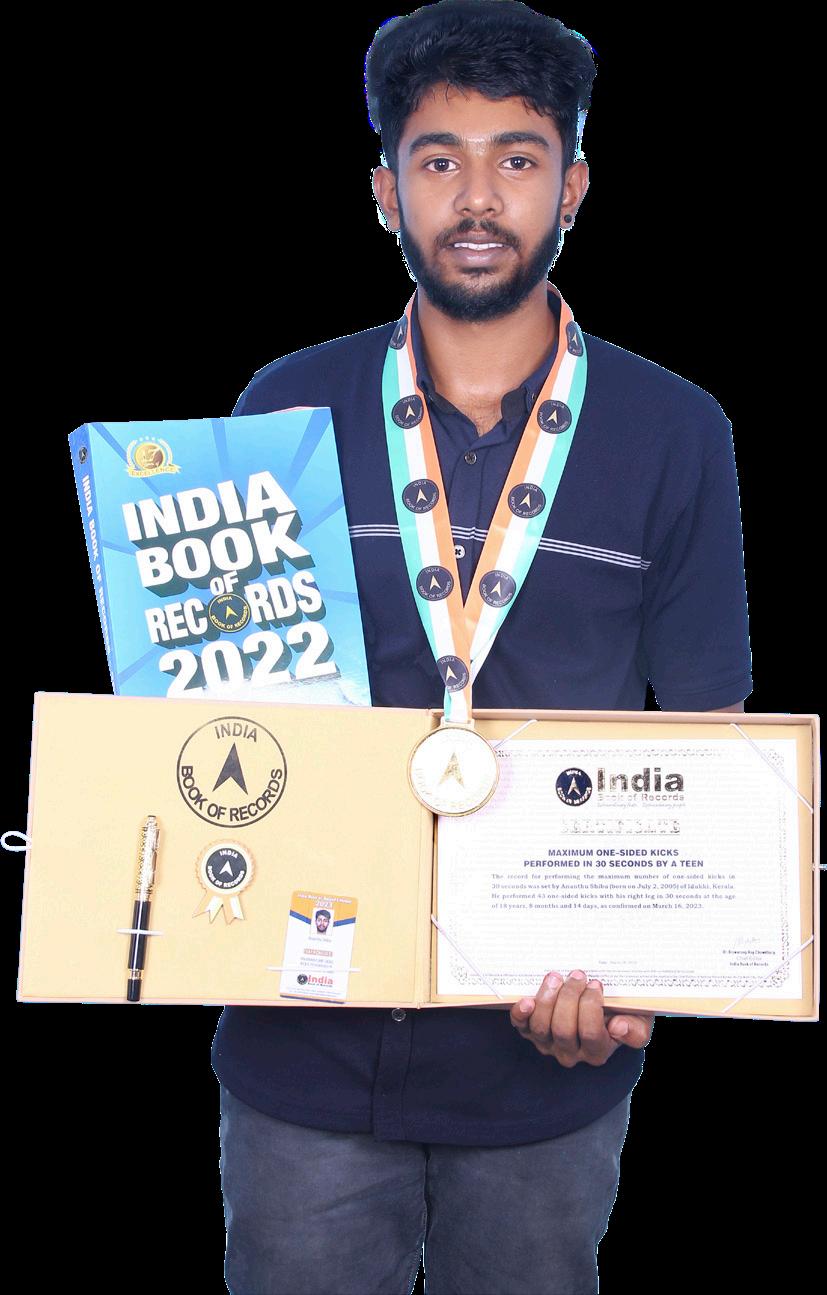 4, 2003) of Thrissur, Kerala, is appreciated for riding a hopple cycle backwards and forwards for 1 minute and 24 seconds, as confirmed on March 3, 2023.