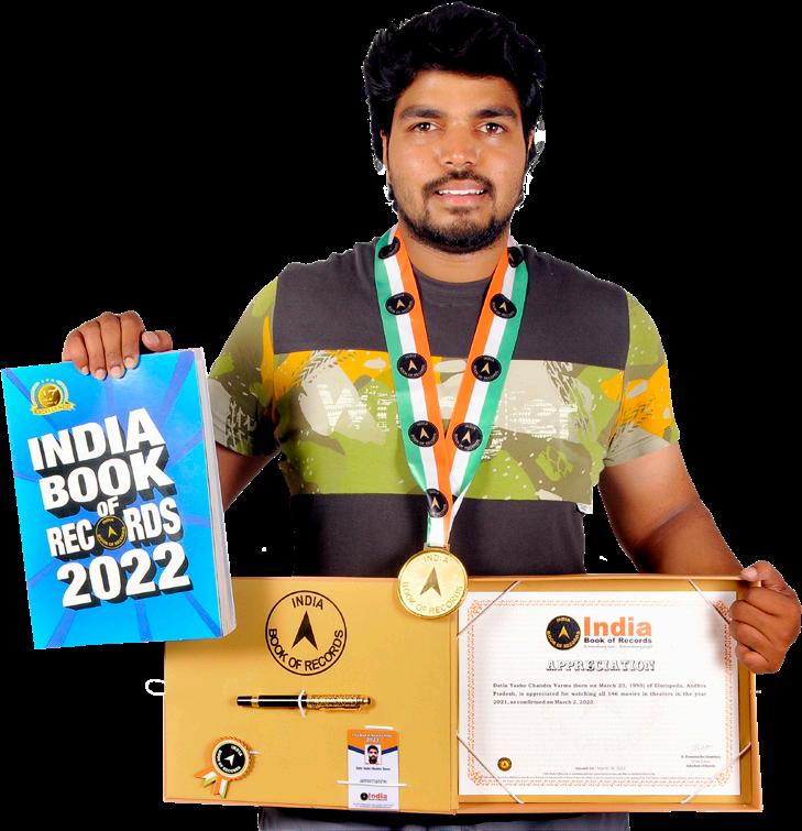 Datla Yasho Chandra Varma (born on March 23, 1995) of Elurupadu, Andhra Pradesh, is appreciated for watching all 146 movies in theaters in the year 2021, as confirmed on March 2, 2023.