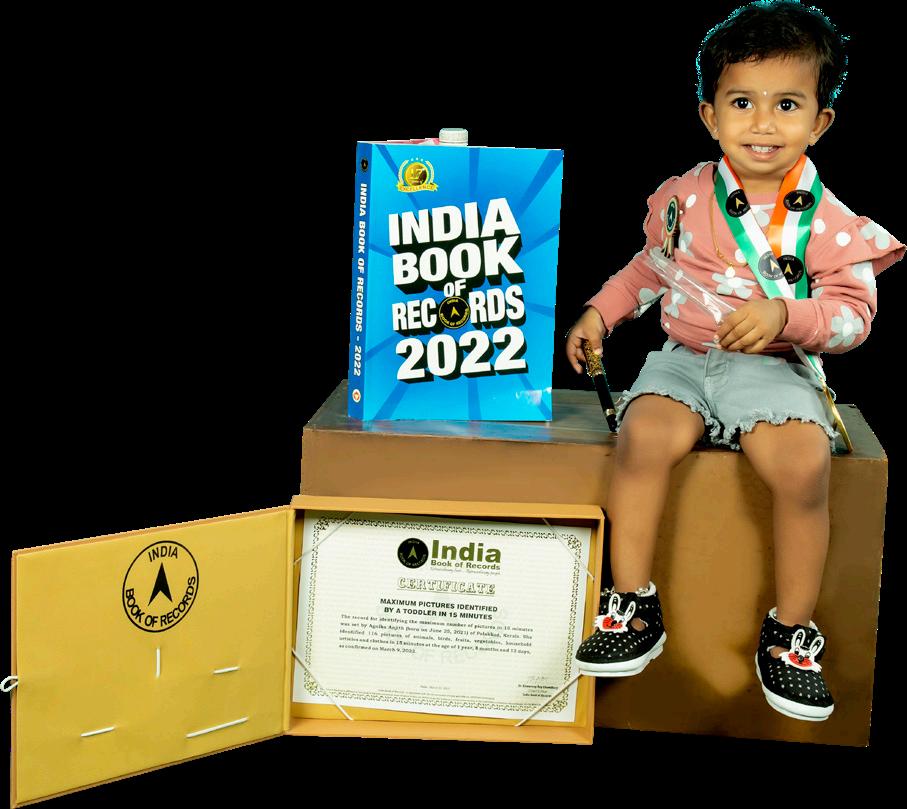 Abheer Sahil Shivani Bansal (born on December 19, 2020) of Mumbai, Maharashtra, is appreciated for identifying 17 food items, 28 animals, 9 birds, 9 fruits, 20 comic characters, 12 vehicles, 10 household objects, 8 parts of the body, 6 deities; imitating 4 animals’ sounds at the age of 1 year and 8 months, as confirmed on September 15, 2022.