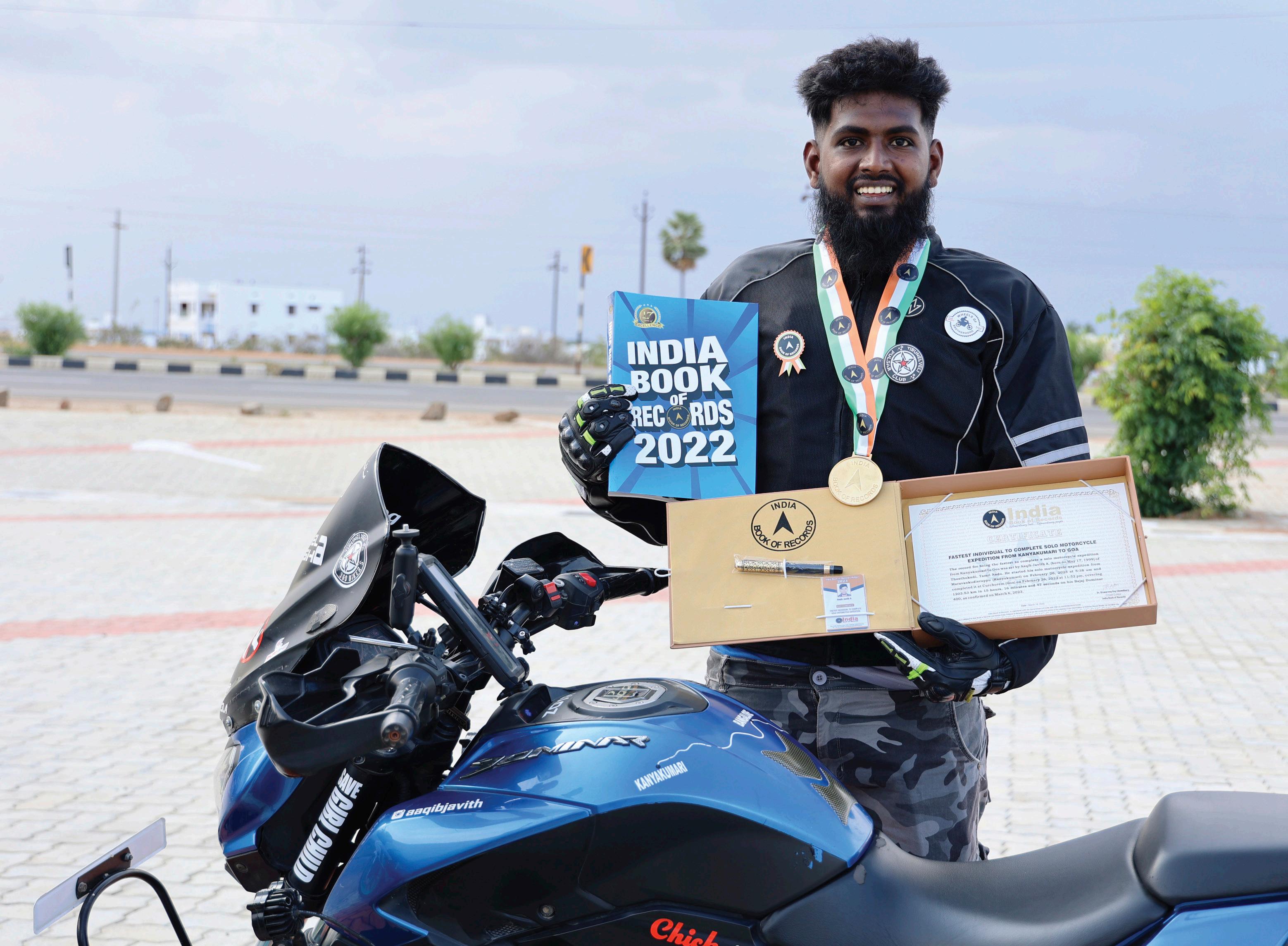 Dhaval Ashwinbhai Panchal (born on March 11, 1988) of Ahmedabad, Gujarat, is appreciated for undertaking a solo motorcycle expedition. He started his solo expedition on March 7, 2023 from Ahmedabad and completed it at Bengaluru on March 8, 2023, covering 1492 km in 27 hours, as confirmed on March 23, 2023.