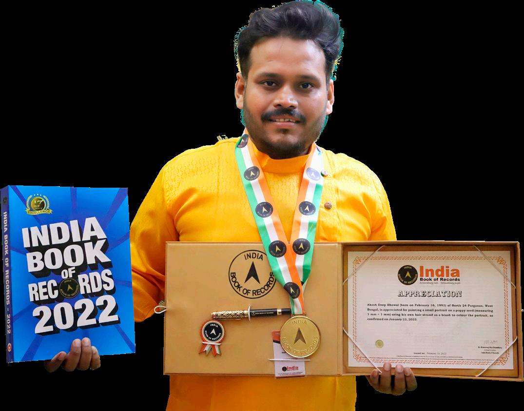 Akash Deep Bhowal (born on February 16, 1993) of North 24 Parganas, West Bengal, is appreciated for painting a small portrait on a poppy seed