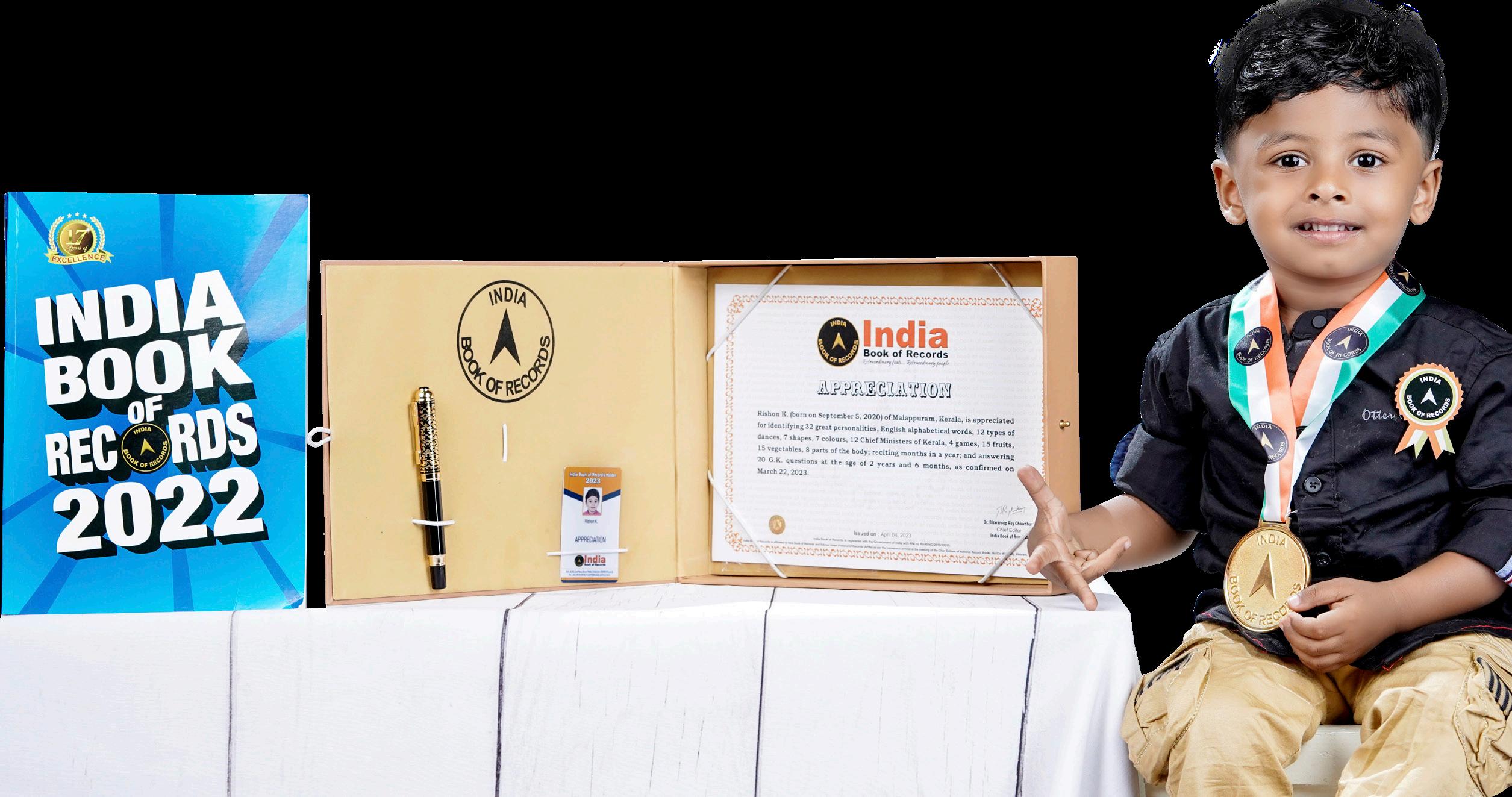 Shresh Vinesh (born on November 11, 2020) of Thiruvananthapuram, Kerala, is appreciated for identifying 6 sports items, 5 kitchenware items, 15 vehicles, 13 parts of the body, 10 cosmetic items, 14 animals, 8 fruits, 8 home appliances,