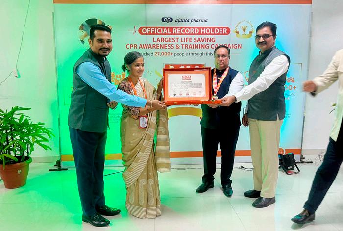 Ajanta Pharma Limited of Mumbai, Maharashtra set a record for the largest life-saving CPR awareness and training campaign, wherein a total of 1077 workshops were conducted by 1019 doctors across the country.