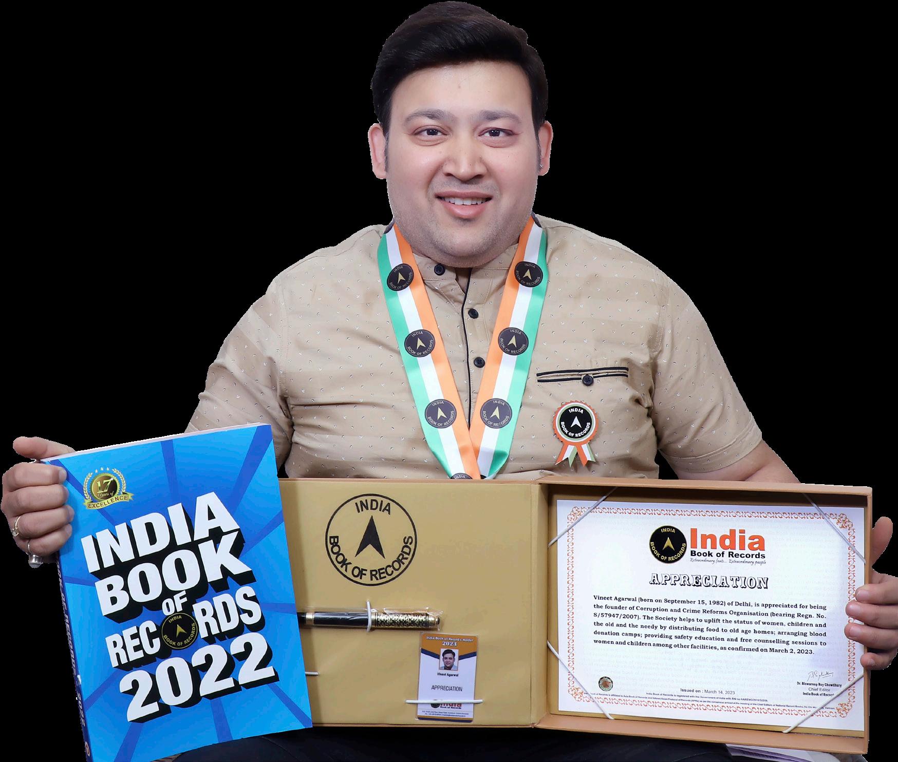 Vineet Agarwal (born on September 15, 1982) of Delhi, is appreciated for being the founder of Corruption and Crime Reforms Organisation (bearing Regn. No. S/57947/2007). The Society helps to uplift the status of women, children and the old and the needy by distributing food to old age homes; arranging blood donation camps; providing safety education and free counselling sessions to women and children among other facilities, as confirmed on March 2, 2023.