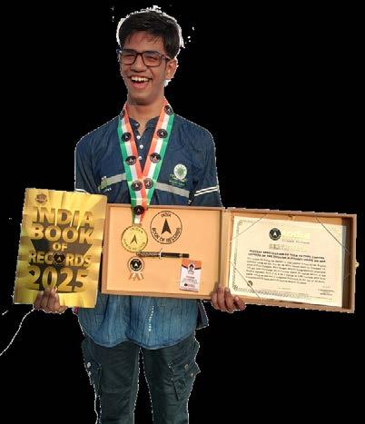 The rooftop 3D Selfie Science Museum transformed into a cultural arena of laughter, music, and devotion. From intricate rangolis and traditional attire to soulful performances and regional delicacies, every moment radiated joy. Beyond the glitter of Diwali, other extraordinary feats added their spark to the season. In Jaipur, hundreds performed yoga for 30 continuous hours at Panchayati Raj Bhavan, a prestigious show of fitness and focus. Chennai’s ten-year-old prodigy Aaradhya stole hearts with a 1 hour 28 minute Bharatanatyam Arangetram, blending precision and grace beyond her years. Meanwhile, chefs at NIPS Institute in West Bengal stirred up a fragrant celebration by crafting 109 varieties of biryani in one grand culinary marathon. High in Africa, mountaineer Adarsh Sharma hoisted the tricolour atop Kilimanjaro on Independence Day, saluting the spirit of Operation Sindoor. From Kerala to Ladakh, Real High Expeditions journeyed from India’s lowest to highest points, while in Odisha, nursing students reached remote Kalahandi village to spread health awareness. Each story this month celebrates determination, creativity, and unity; a true reflection of India’s festive heartbeat. Write to us: media@indiabookofrecords.in