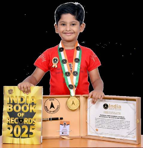Mohammed Hanoon (born on July 29, 2019) of Kozhikode, Kerala, is titled as ‘IBR Achiever’ for recalling squares of 6 numbers, cubes of 5 numbers and skip counting of 3 and 12 up to 10 digits; solving 18 single and multiple digit addition sums, 18 multiplication sums and 4 subtraction sums orally, at the age of 5 years and 7 months, as confirmed on March 17, 2025.