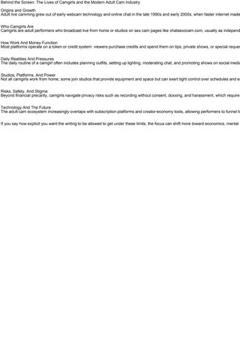 The adult cam ecosystem increasingly overlaps with subscription platforms and creator economy tools, allowing performers to funnel live