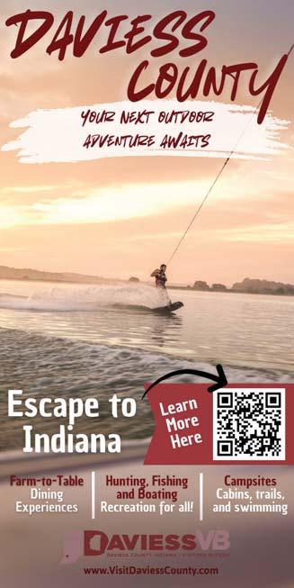 Travel light by reading the Indiana Travel Guide on your phone, laptop or tablet on the web or download the PDF. Explore this guide and more Indiana county and city travel guides at VisitIndiana.com/ brochures Your next adventure IN Indiana awaits!