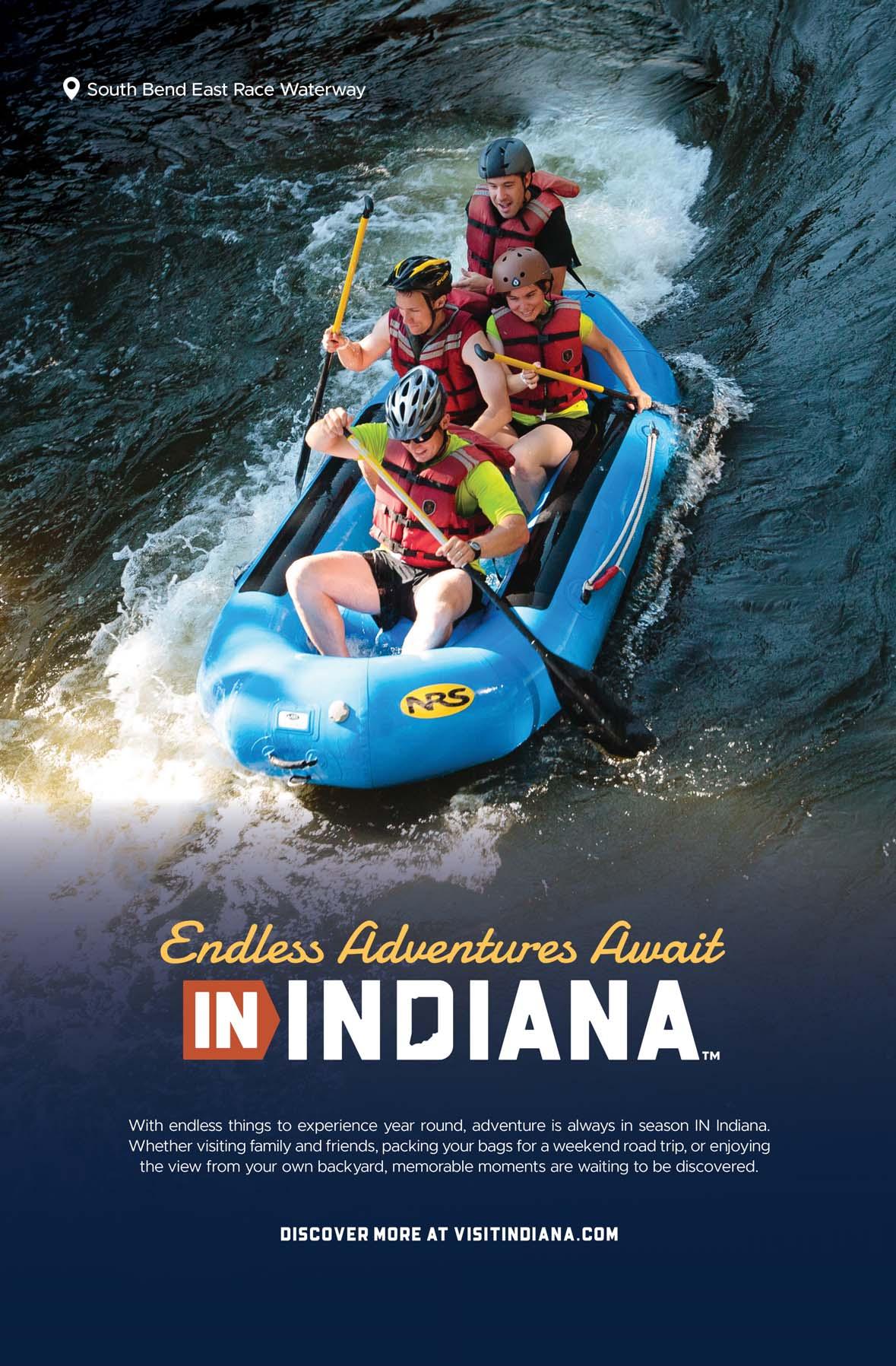 Explore simple pleasures here. Notre Dame, East Race Waterway, Potato Creek State Park, museums, destination dining and vibrant performing arts await. 800.519.0577, visitsouthbend.com