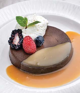CONTEMPORARY FRENCH Ambrosia Hospitality Group might be best known for its Italian ventures, but for their newest restaurant, Dan Cage and Anna Pizzi Cage looked back to their newlywed days spent in France. The result is Josephine—named after Emperor Napoléon Bonaparte’s first wife—a modern take on bistro fare. Chef Andrew Popp has built a menu that balances out classics of the genre (yes, escargot and steak tartare are on the list) with twists on French onion soup—lightened here with chicken broth and sherry—and a citrus and fennel salad. Standout desserts include pot de crème topped with amaretto cream and an individual goat cheesecake topped with syrupsoaked cherries. For a breezier experience, ask for a seat at the bar, soundtracked with French jazz and dotted by quirky pendant lighting. 110 W. Main St., Carmel, 317-548-3589, josephinecarmel.com $$$$