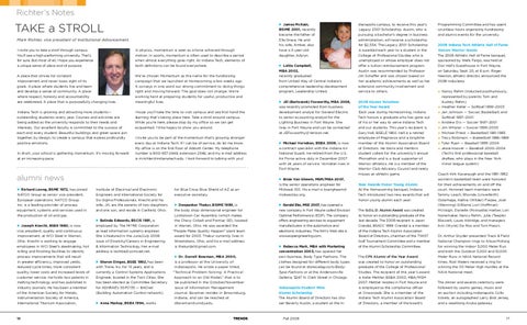 for Blue Cross Blue Shield of AZ as an executive secretary. ► Deepankar Thakur, BSIME 1999, is the body shop dimensional engineer for Lordstown Car Assembly (which makes the Chevy Cobalt and Pontiac G5), located in Warren, Ohio. He was awarded the “People Make Quality Happen” plant team award for 2003. Thakur currently lives in Streetsboro, Ohio, and his e-mail address is thakurda1@gmail.com. ► Dr. Darrell Bowman, MBA 2000, is a professor at the University of Indianapolis. He wrote a paper titled, “Technical Problem-Solving: A Practical Approach to an Old Model,” that is to be published in the October/November issue of Information Management Journal. Bowman resides in Brownsburg, Indiana, and can be reached at dbowman@uindy.edu.