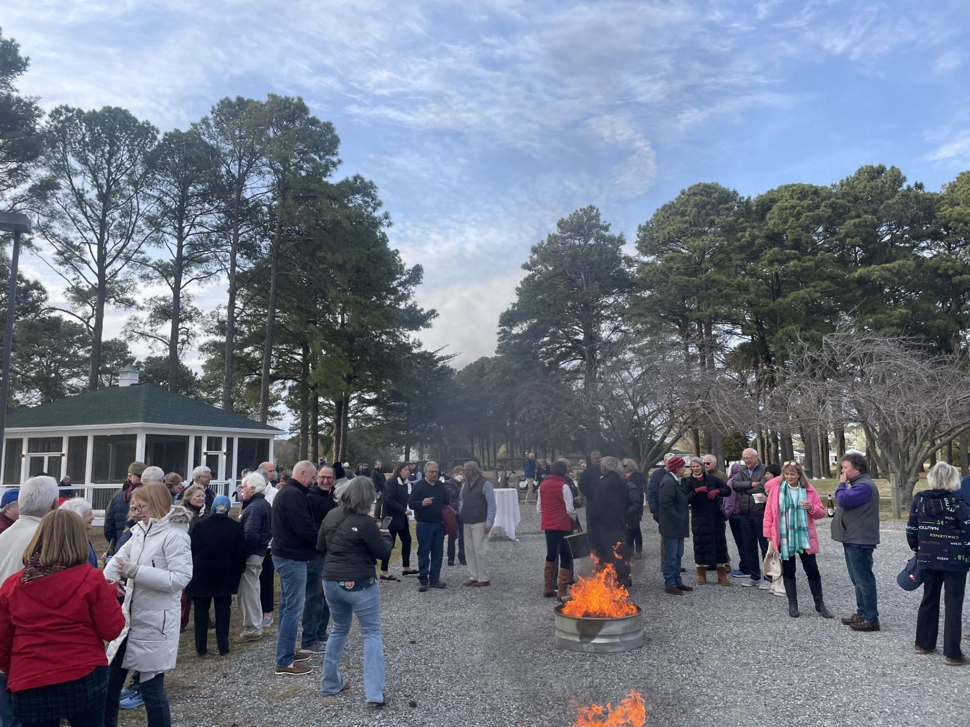 Visit the new Pavilion at the docks! Both the pavilion and the docks are Club-wide amenities available for all members to enjoy.The planning & construction of the pavilion each came in under their budgets of $23,800 and $216,780 respectively with actuals of + $12,975 and $207,963 Thank you to the Blue Heron society donors who contributed to this construction We are using the Sock Burning as a soft opening before a Grand Opening later in the Spring. This building is used by dinner clubs, book clubs, golf groups, Bible study groups, private parties, ICYC, visiting yacht clubs and other special events throughout the year. An ad hoc committee headed by Mary Kay Rotert, Tony Ennis, and Kim Pate championed the project over a number of years with considerable input from the House, Planning & Finance Committees. Golf, Green & Grounds, Racquet and Food & Beverage were all consulted throughout the planning process for size and location. Thank you to the many club members for making this a success. You can reserve the Pavilion for use by contacting Jennifer Mason. Look for the Grand Opening announcement. (See photos below)