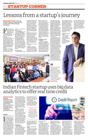 Indian Fintech startup uses big data analytics to offer real time credit UNLIKE OTHER financial institutions, the CashCare option is available at the point of sale, where a customer can apply and instantly use the credit limit provided to them Srikanth RP srikanth.rp@expressindia.com