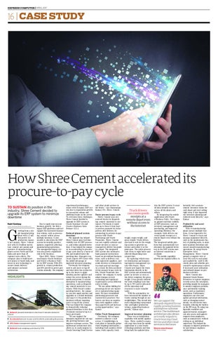 How Shree Cement accelerated its procure-to-pay cycle TO SUSTAIN its position in the industry, Shree Cement decided to upgrade its ERP system to minimize downtime Rashi Varshney rashi.varshney@expressindia.com