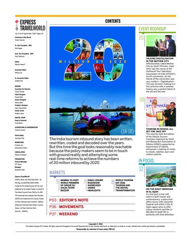 Express TravelWorld® POSTAL REGD. NO. MCS/163/2016 – 18 RNI Reg. No.MAHENG/2005/15993 Printed by The Indian Express (P) Ltd. and published by Ms Vaidehi Thakar on behalf of