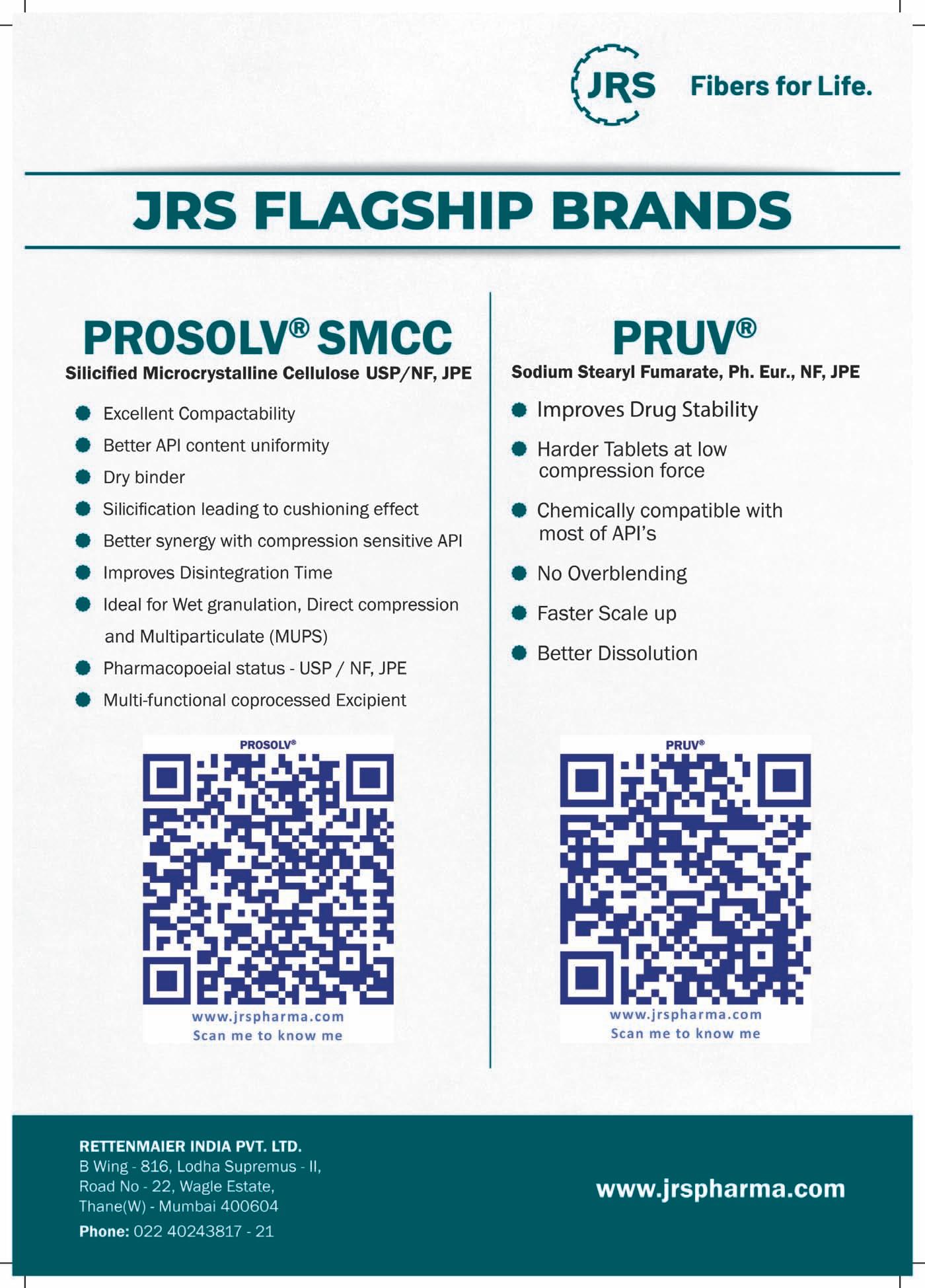 Lieberman, Joseph L. Kanig. The theory and Practice of Industrial Pharmacy, Varghese publication house, 3rd edition, 1990, 123-144. QR Code: Scan the QR code for more details regarding PRUV® from JRS Pharma.
