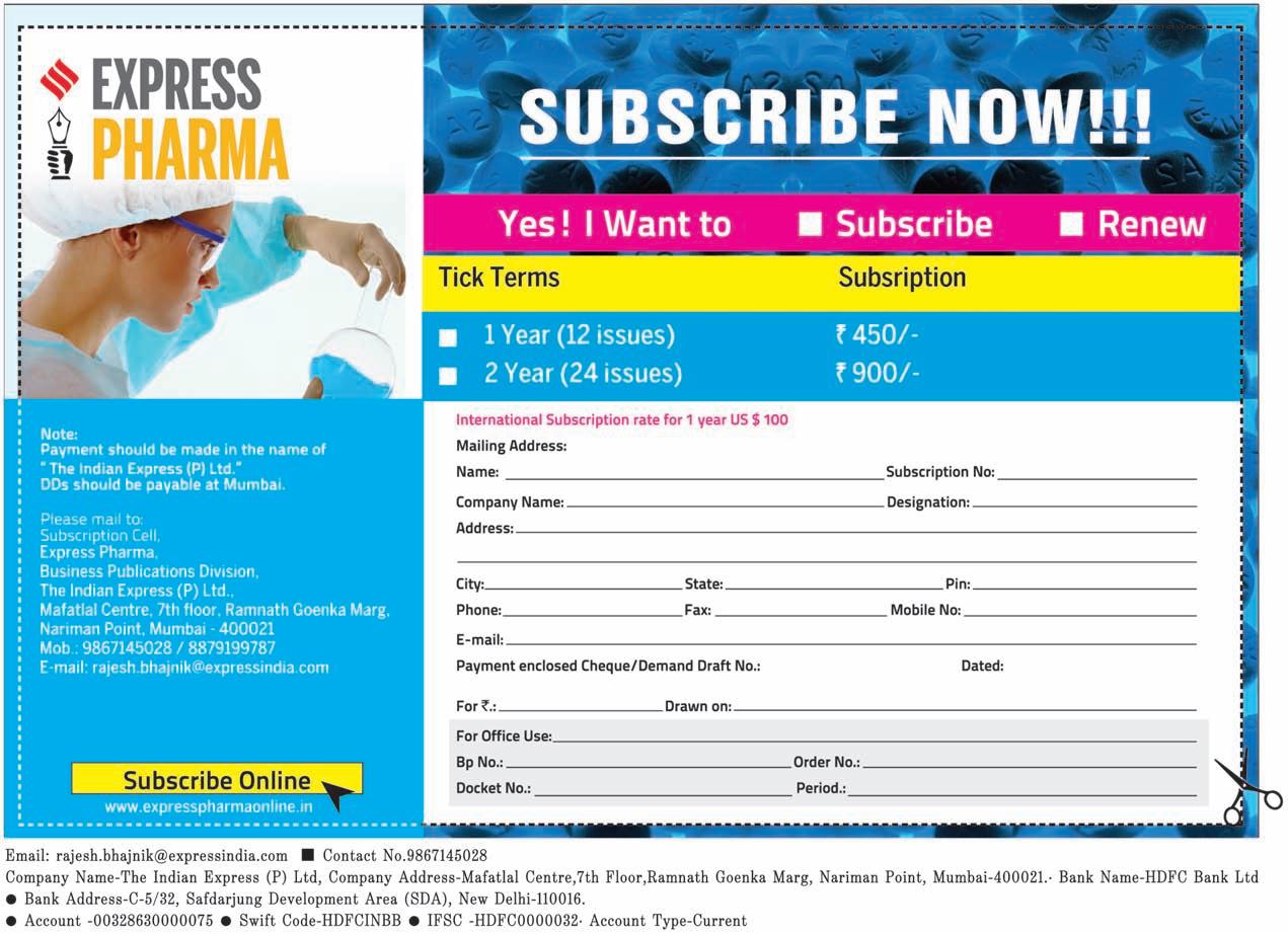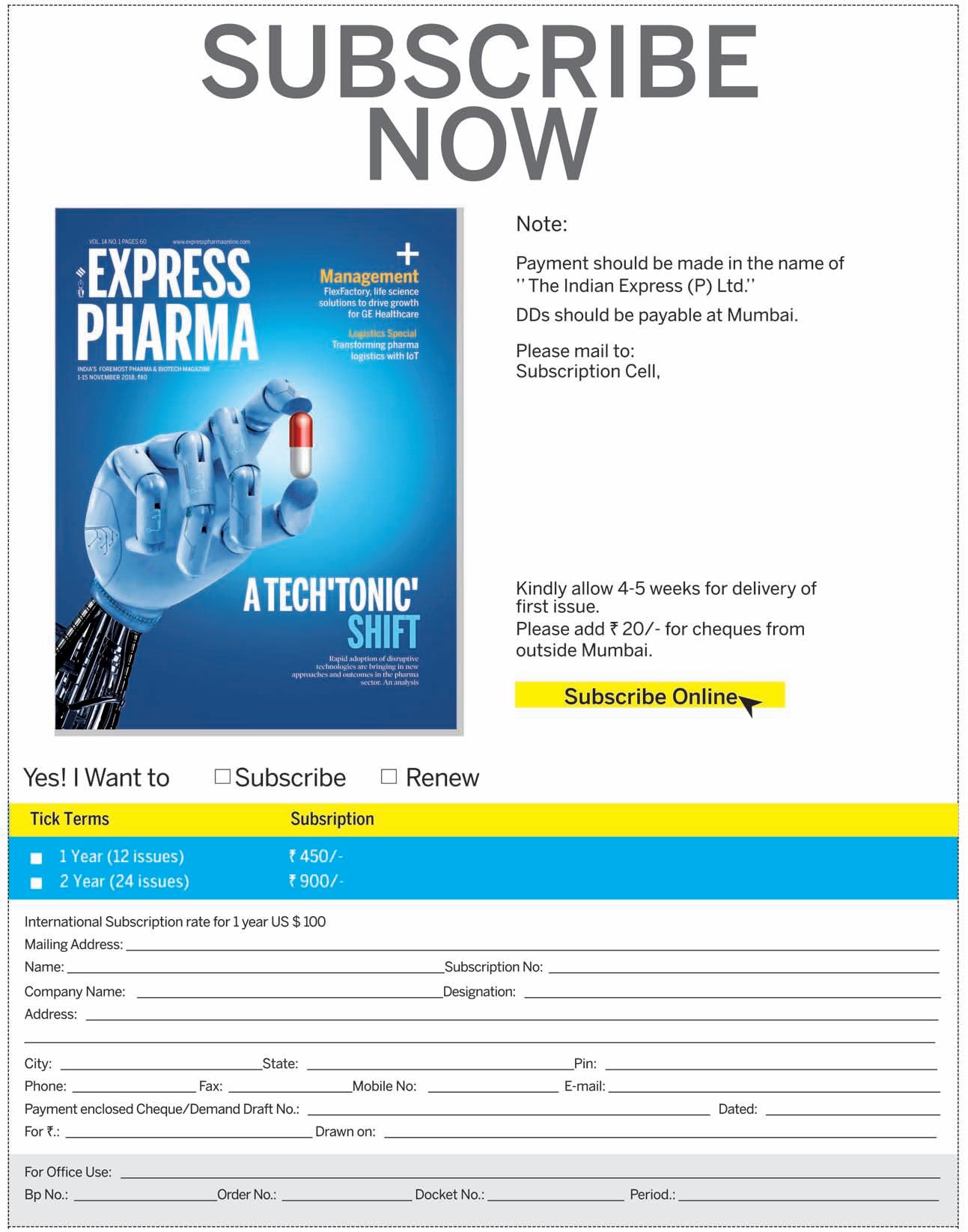 ❒ Express Pharma has a strict nontolerance policy of plagiarism and will blacklist all authors found to have used/refered to previously published material in any form,without giving due credit in the industry-accepted format.All authors have to declare that the article/column is an original piece of work and if not,they will bear the onus of taking permission for republishing in Express Pharma.