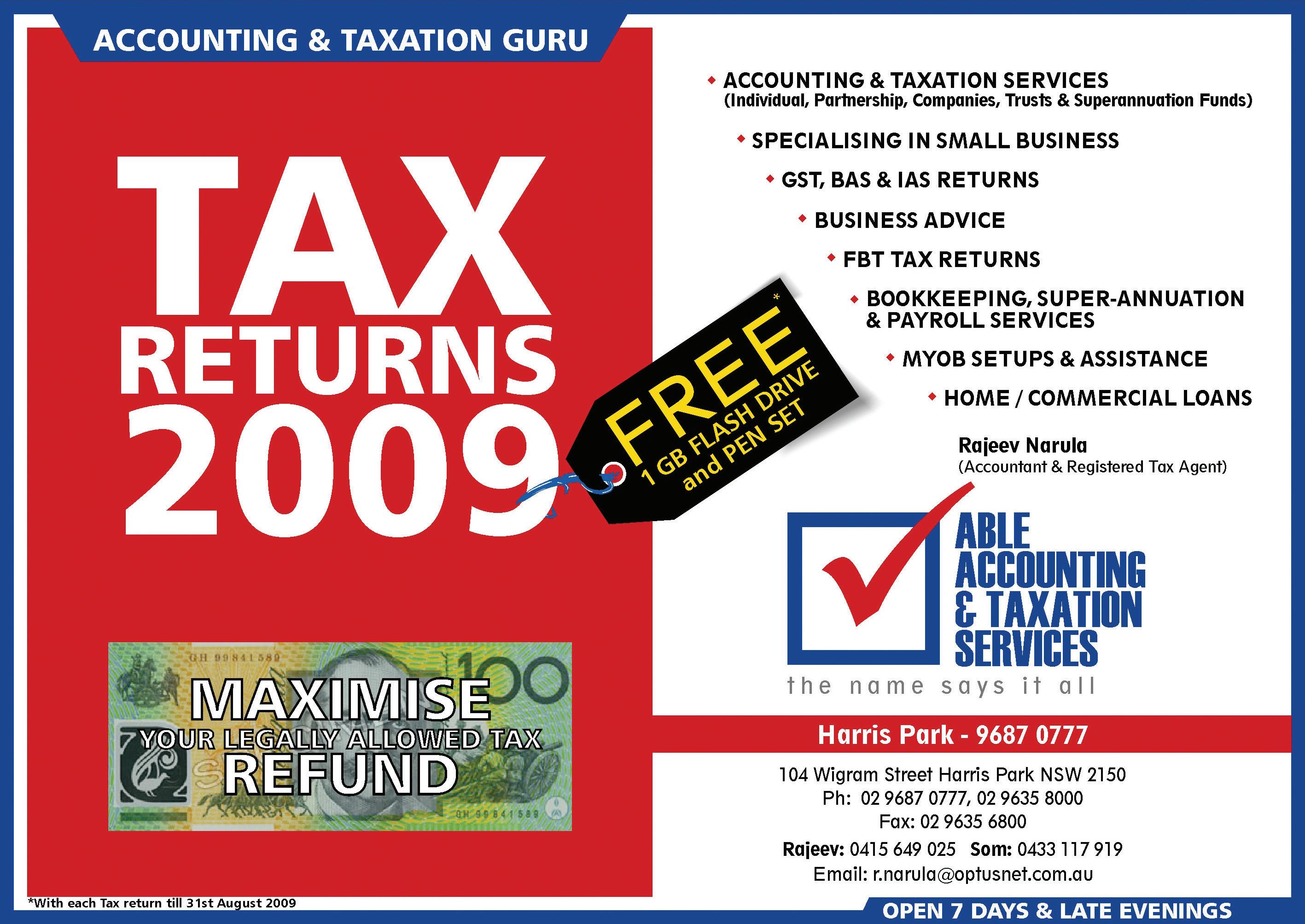 4 <> AUGUST (2) 2009 INDIAN LINK Fintax Business Services, Norwest Business Park 'Versatile' Building, Suite 1.05, 29-31 Lexington Drive Bella Vista NSW 2153 Baulkham Hills BC, PO Box 7000 Baulkham Hills NSW 2153 P : 02 8824 5022 F : 02 8824 9522 info@fintaxservices.com.au www.fintaxservices.com.au Limited liability by the Accountants Scheme approved under the Professional Standards Act 1994 (NSW) A ccount A nts • R egiste R ed t A x A gents • B usiness A dviso R s NOW, WHAT CAN WE DO FOR YOU? FinTax Business Services has been specially set up to assist Individuals and Small to Medium Size Businesses to maximize their output by managing their Financial and Taxation aspects with professional expertise. INDIVIDUAL • Tax Returns • Self Managed Super Funds • Financial Services • Advice on Tax planning, Negative gearing, Salary packaging • Advice on all types of Loans & Insurances BUSINESS • Business Advisory Services – Business Structure, M.I.S, Statutory Compliance, Tax Planning • Small Business Software and Systems – set up and operational assistance • Accounting and Taxation services for all types of Business Entities • Financial Services • Payroll, Payroll Tax, Workers Compensation, Insurances, Business Loans Over 20 years of local and overseas experience Call Rajesh Sethi - 0414 488 850 Call Vijay Bansal - 0421 225 504 FINTAX BUSINESS SER VICES COMPLETE FINANCIAL SOLUTIONS Also available in CASTLE HILL & WESTMEAD • ACCOUNTING • TAXATION • BUSINESS ADVISORS • INSURANCE • SUPER • FINANCE • MANAGEMENT INFORMATION SYSTEMS • ACCOUNTING • TAXATION • BUSINESS ADVISORS • INSURANCE • SUPER • FINANCE • MANAGEMENT INFORMATION SYSTEMS WORDSWORTH CREATIVE www.dacuttingedge.com.au We take pride in being able to offer you great services at best prices coupled with regular money saving promotions and special offers. Women Pamper package1 $84 - Pedicure, Manicure, Clean up, Threading, Nail art & Head massage $99 - Full hand,1/2 leg, under arm Wax, hair cut, blow dry & face threading Men Special Package Mini Facial, Hair Cut, Shampoo & Shaving worth $60 Hair Cut of $10 Hair Cut and Shaving $15 Kid Hair Cut of $10, Many more packages (Condition’s apply) Da Cutting Edge A beauty saloon for men and women Located in the heart of Strathfield suburb, Sydney Ph: 97642466 1 / 37 The Boulevarde, Strathfield NSW 2135 WINTER SPECIAL 25% off on all Hair cut, Color Shahnaz Hussain Facials & Body massage