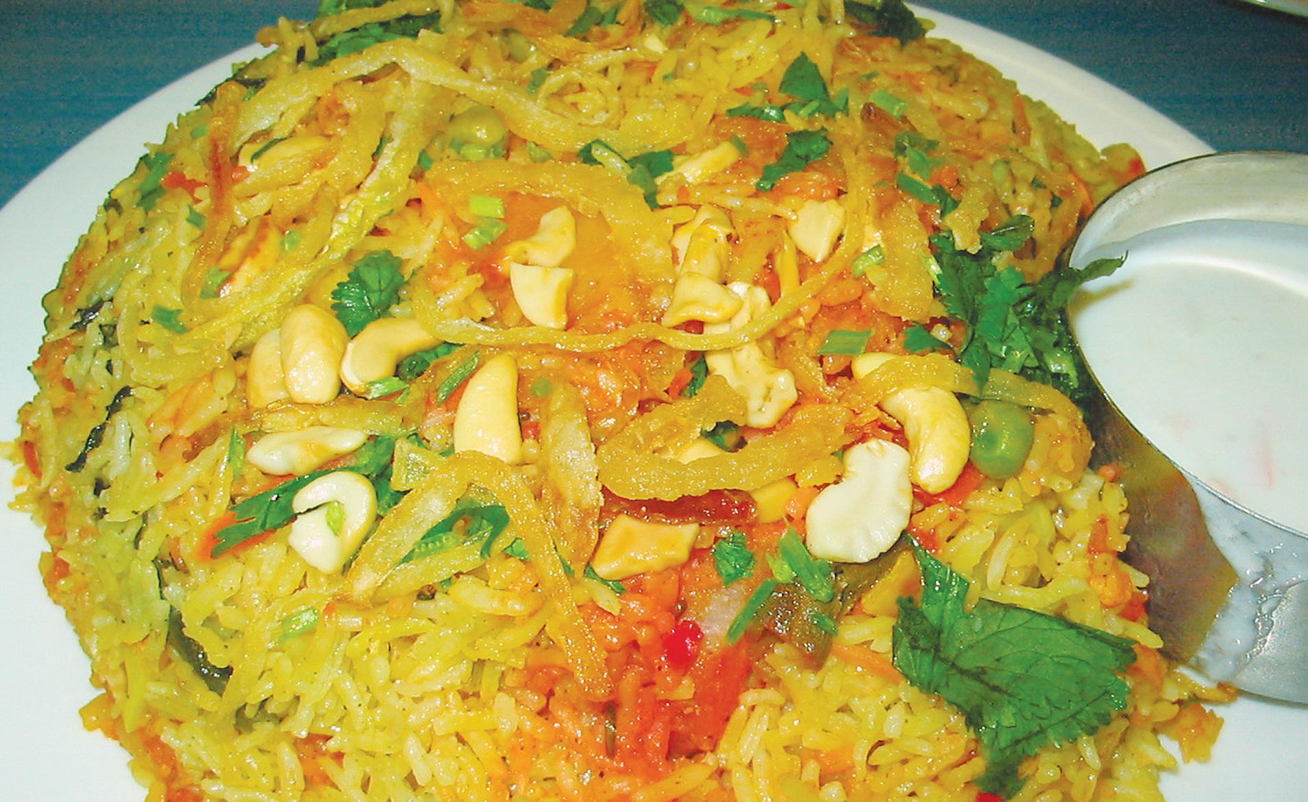 our spiritual lives, not a promotion at work.” After a visit to the family deity’s temple, a specially prepared breakfast is served. Classic Indian sweets like gulab jamun, burfi, jalebi, laddoos made in pure ghee, butter biscuits like nankhatai, and savouries like samosas, chevda, sev and nuts, prepared well in advance by mothers, grandmothers and aunts are passed around after being blessed at the pooja. The Diwali lunch in North India is purely vegetarian, usually a wholesome vegetable biryani, daal and spicy pickle. NonBrahmin South Indians like Amsha’s family, however, celebrate with varieties of meat preparations to symbolise plenty.