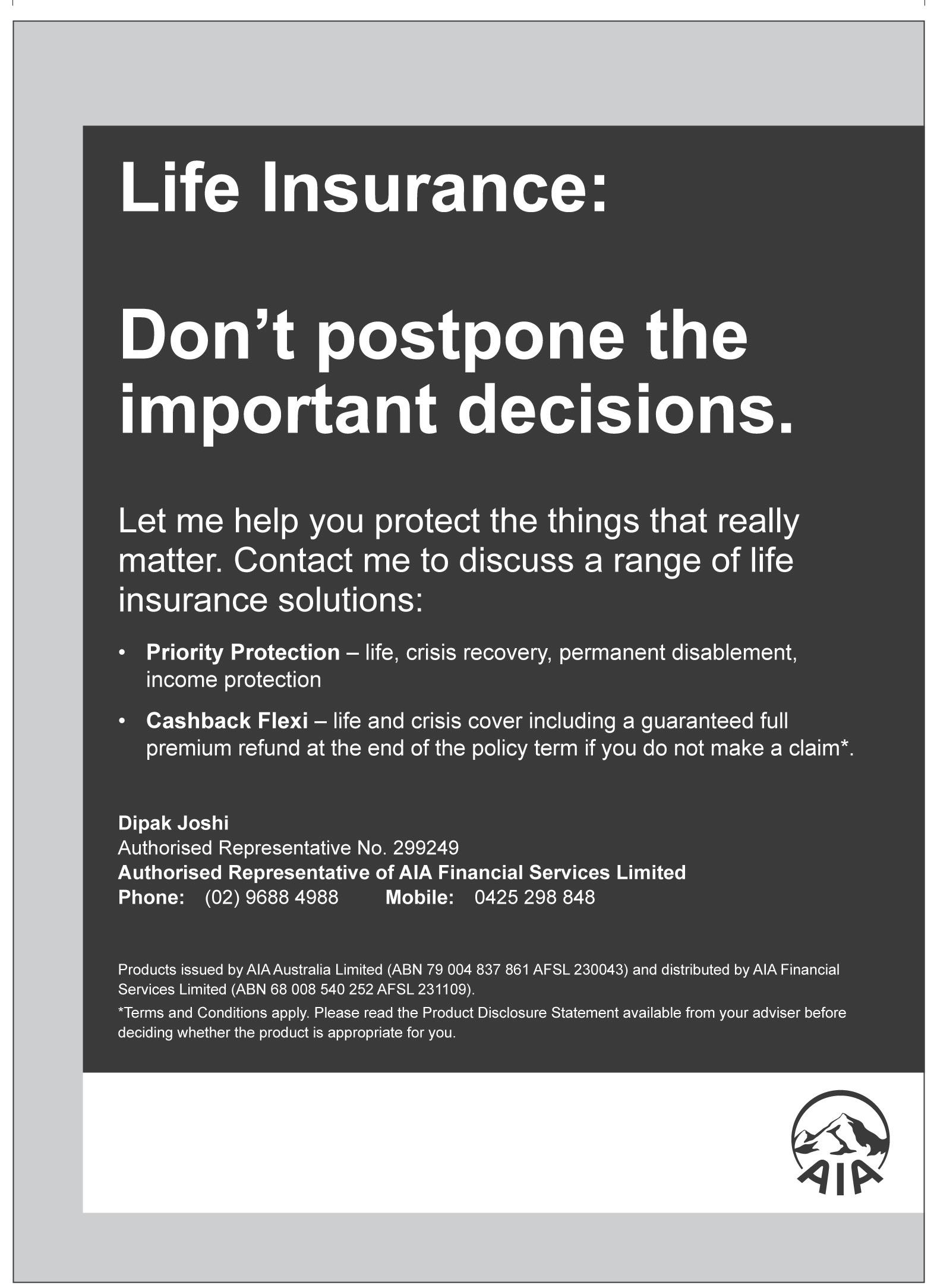 Indian Link is a fortnightly newspaper published in English. No material, including advertisements designed by Indian Link, maybe reproduced in part or in whole without the written consent of the editor. Opinions carried in Indian Link are those of the writers and not necessarily endorsed by Indian Link. All correspondence should be addressed to Indian Link