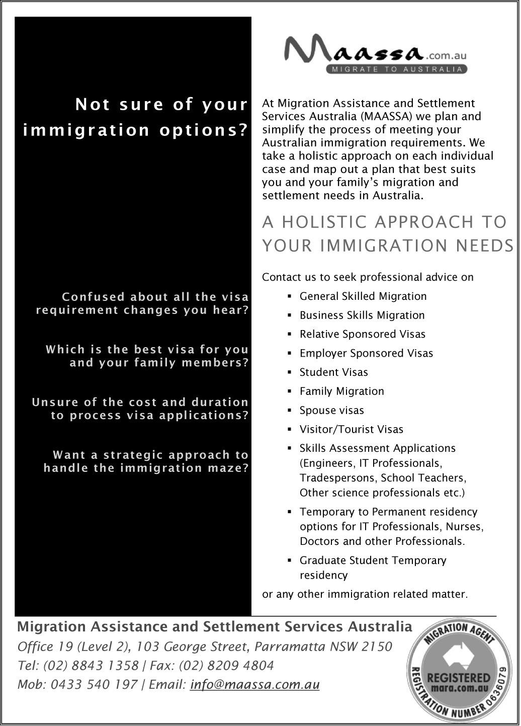 Australian citizen, 36 years old, hospitality professional working in Sydney. Seeking girl between 27-36 old, caste no bar. Please contact 0416 398 869 or for other details and photo mail to: satishsingh_2009@yahoo.com.au