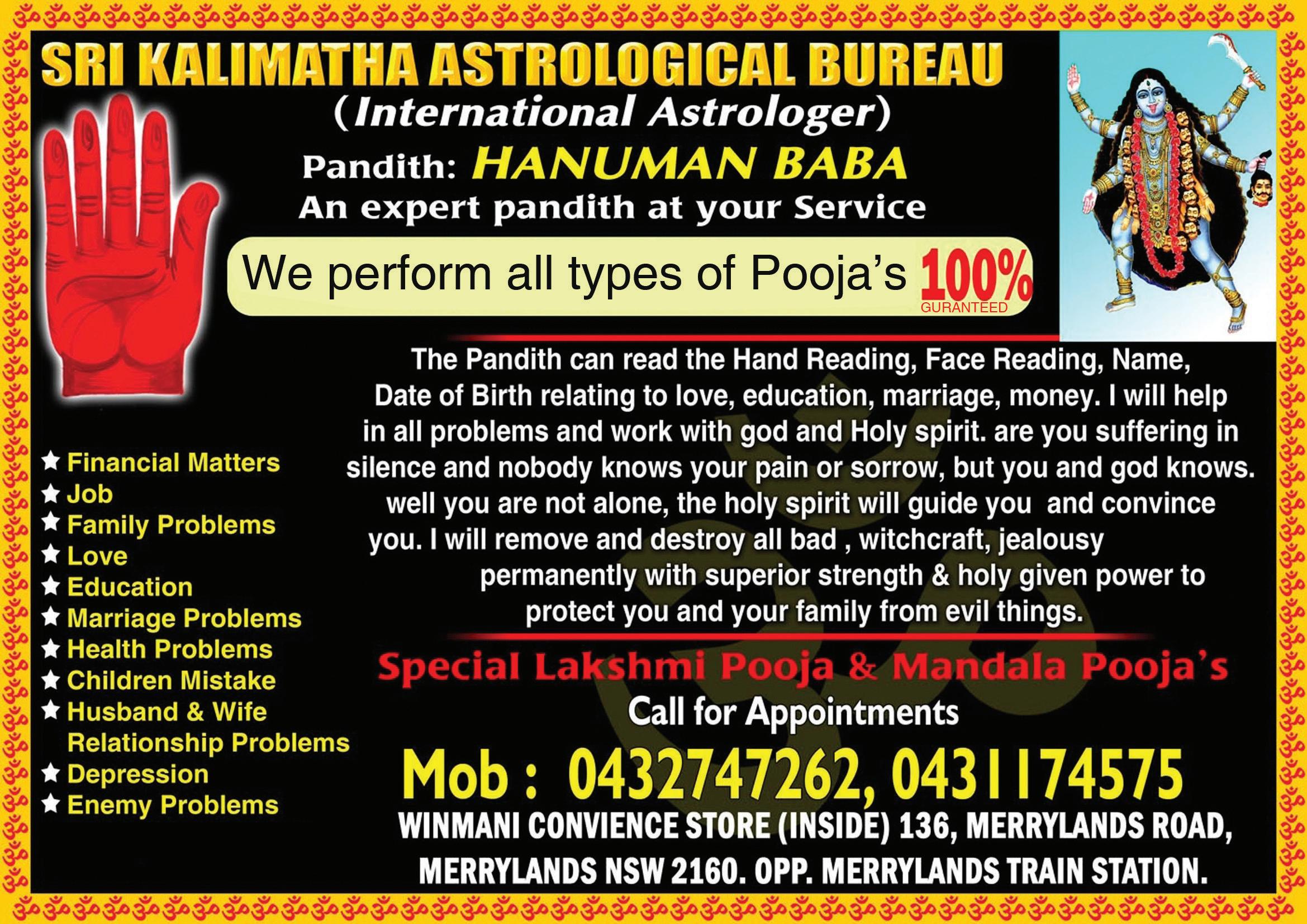 8-16 Oct Come and celebrate Navratri with your friends and family at the SSDS Ram Krishna Temple, 24/7 Lyn Parade, Prestons from 7pm -9pm. Details Pandit K P Sharma 0411 101 700 or visit www. ssds.org.au