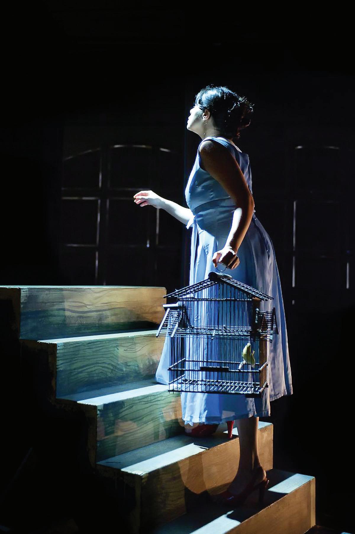 The power of this play is in Michelle’s performance. While the play is about Billie (the young girl), Michelle moves in and out of three characters: young Billie, Billie’s mother, and an older Billie remembering her past. The story doesn’t flow like a normal story, beginning to end. The memories flow from a quiet monologue describing an idealistic memory of her mother, perhaps one that we all have of our mothers. Michelle shifts from one character to another seamlessly, the young Billie in a singlet and underpants and the mother wearing a blue dress and red heels.