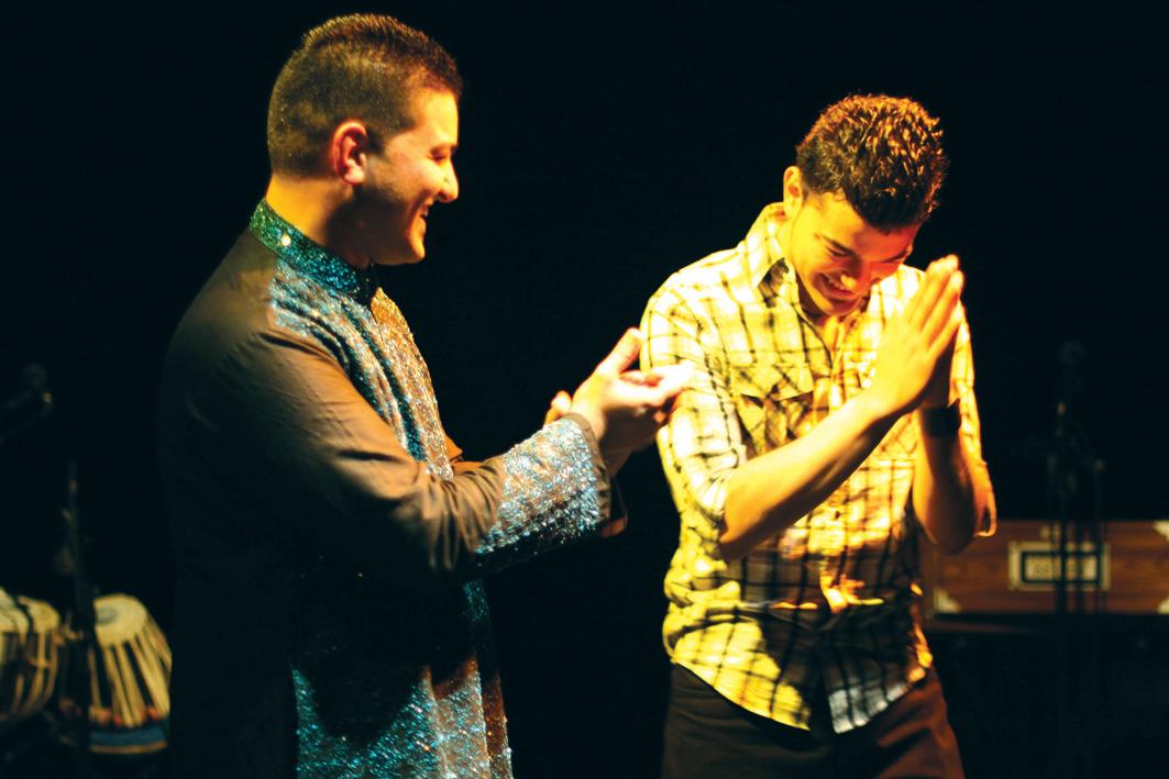 Accompanying Prabhu are percussionists Nila Hagglund and Jiva Berry, his partners in the band OSONIQS Rhythm~In. Both Nila and Jiva have been involved with Indian music from early on in their lives. (All three appeared on the Channel 7 show X-factor Australia 2010 to support contestant India Rose Madderom on her song Jai Ho).