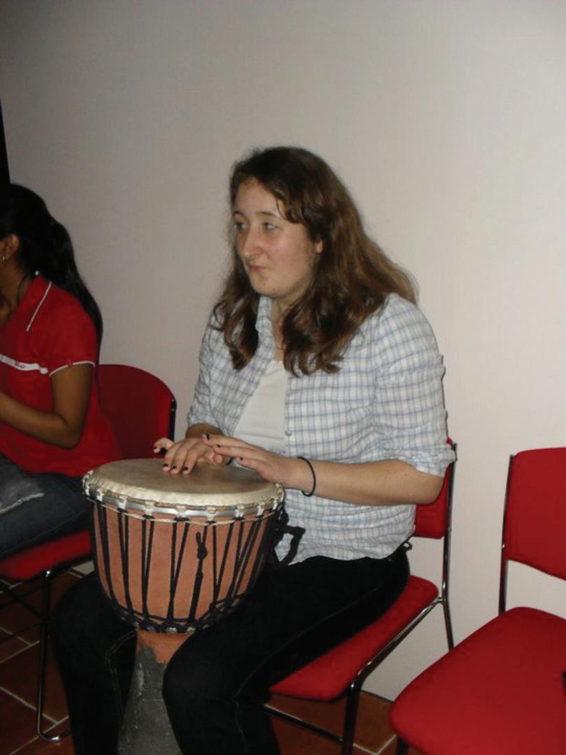 Prabhu plays the Hang, a kind of percussion instrument. It looks like a flying saucer, or a wok with lid. Made of steel, it has seven to nine tone-fields ‘hammered’ on its surface, and is played by the hands, resting in the player’s lap. A fairly recent creation, it is only available in Switzerland where it was invented in 2000, still made by hand by its original creators.