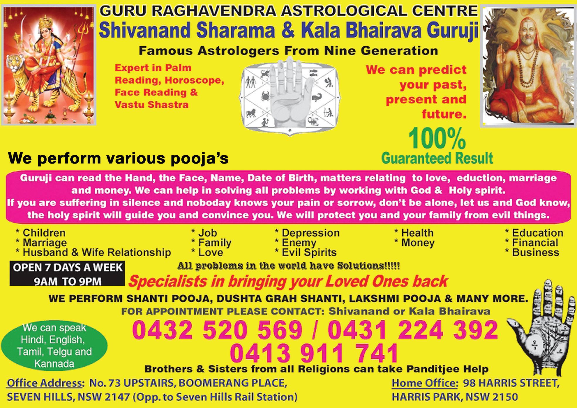 names, wonderful satsang and Prasad, 9.00am to 11.30am. Contact Br Gopal on 0416 482 149.