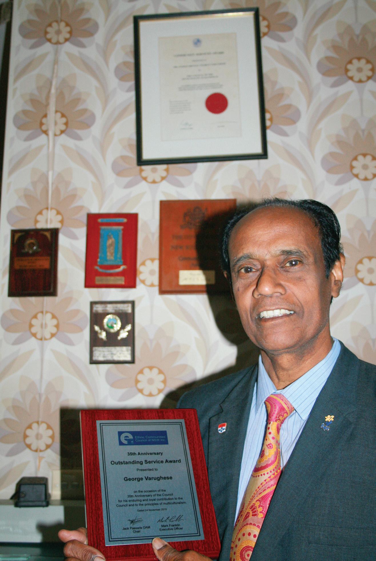 Having personally experienced the feelings of isolation when he was a new migrant, George tries his best to help others who are in similar situation. He sits on all the Randwick Council citizenship ceremonies. He is also the co-founder of Sydney Malayalee Association and is involved in the World Malayalee Council. The walls of his house display some of the numerous awards George has won for his community service while he says many are “stashed away”. However for all his successes and the important positions held, George still comes across as a simple man, someone always willing to help a fellow human being. The award from the Premier cannot go to a better person. I was reminded of what Winston Churchill once said: “We make a living by what we get, but we make a life by what we give.”